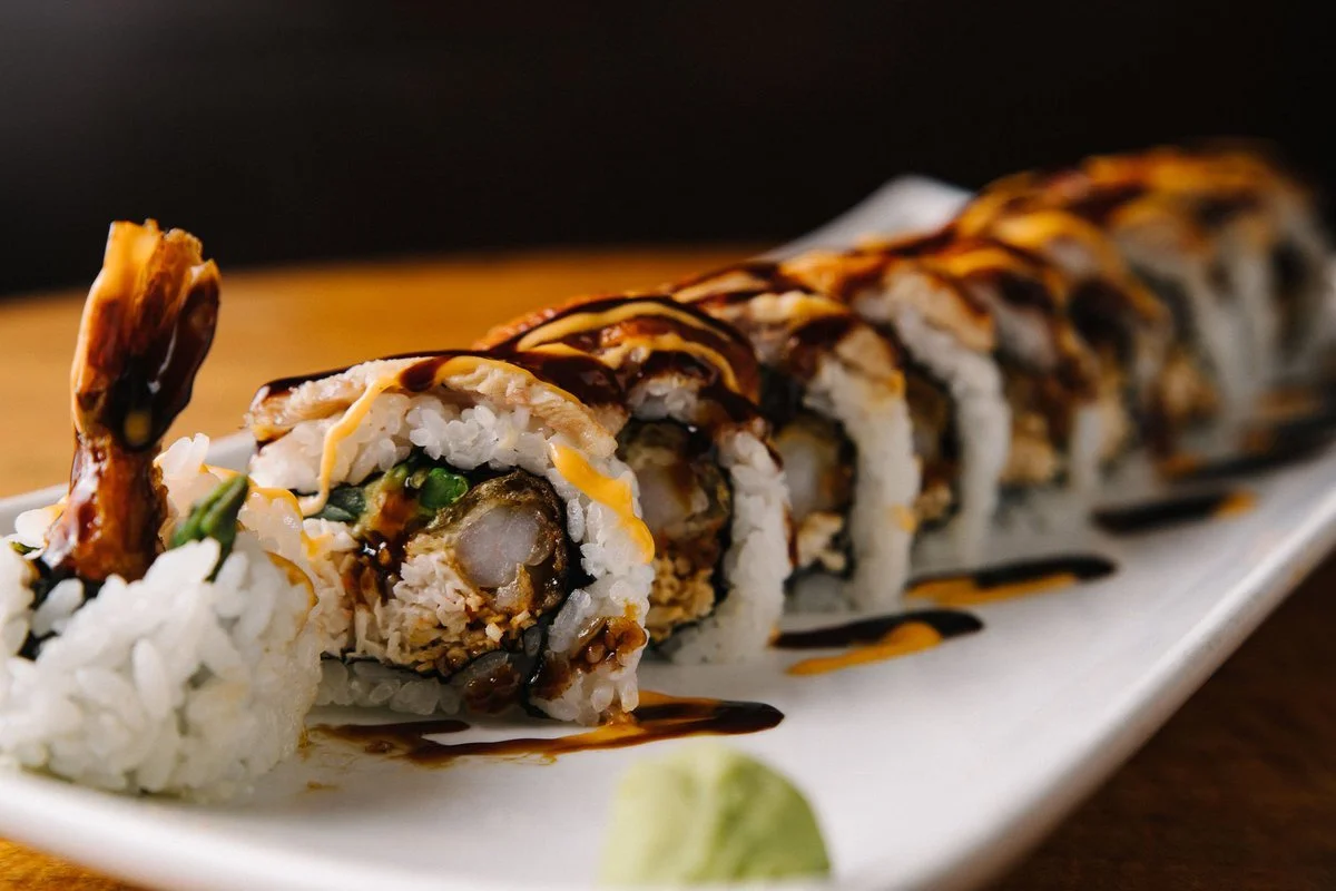 Shrimp tempura, cream cheese, crab, smoked eel, avocado and cucumber